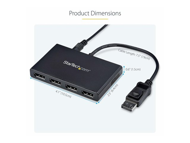 DisplayPort 1.2 MST-hubb - 4x 1080p - DisplayPort video-splitter för utökat skrivbordsläge endast på Windows-datorer - DP till fyra DP-skärmar - Linjedelare för video - 4 x DisplayPort - skrivbordsmodell - för P/N: SV231DPU34K, SVA5N3NEUA