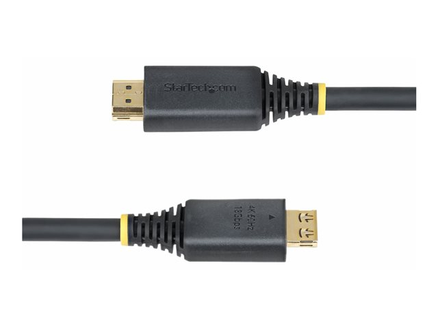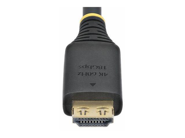 Den 5 meter långa HDMI-kabeln från StarTech.com är utformad för att leverera höghastighetsprestanda med stöd för 4K 60 Hz och 1080p vid 240 Hz. Den har skärmad teknik som säkerställer en pålitlig anslutning med aluminiummylarfolie och flätad skärmning för hållbarhet. De greppande kontakterna ger en säker passform, medan EMI-skyddet hjälper till att minska störningar för klar ljud- och videoöverföring. Denna kabel stöder upp till 32 ljudkanaler och innehåller tekniker som Dolby TrueHD, Dolby Atmos och HDR 10, vilket gör den lämplig för bildskärmar, TV-apparater och displayer. Den är byggd för en livslängd på 10 000 anslutningar och 2 000 böjningar, vilket ger lång livslängd och styrka. Det halogenfria termoplastiska elastomermaterialet i manteln garanterar säkerhet och överensstämmelse med RoHS-standarder.