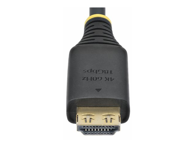 StarTech.com HDMI-kabeln erbjuder prestanda med en robust design som är skräddarsydd för ljud- och videoöverföring. Den har skärmad kabelteknik som garanterar minimal störning och stöder upplösningar upp till 4K vid 60 Hz och 1080p vid 240 Hz, vilket gör den till ett perfekt val för bildskärmar och TV-apparater. De 19-poliga HDMI-kontakterna av typ A är guldpläterade för tillförlitlig anslutning och har funktioner som dragavlastning och EMI-skydd, vilket garanterar hållbarhet under användning. Denna kabel har en livslängd på upp till 10 000 anslutningar och 2 000 böjningar. Den stöder format som Dolby TrueHD, Dolby Atmos och HDR 10, vilket möjliggör en uppslukande tittarupplevelse. Med en diameter på 6 mm är kabeln lätt att hantera och installera, samtidigt som den är halogenfri och uppfyller RoHS-standarderna, vilket bidrar till en säker och miljövänlig miljö.