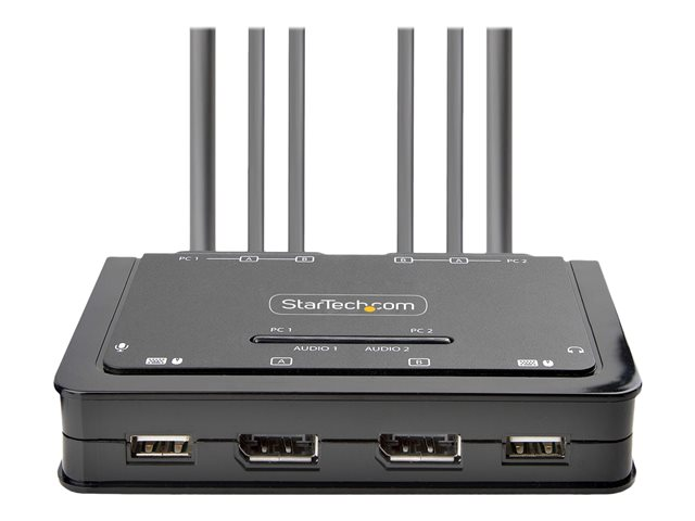 StarTech.com 2-Port Dual-Monitor DisplayPort Cable KVM Switch, 4K 60Hz, Compact KVM with 5ft/1.5m USB-A/DisplayPort/Audio Integrated Cables, Bus Powered