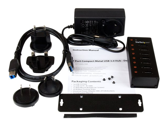 StarTech.com USB 3.0-hubb med 7 portar – skrivbords- eller väggmonterbart metallkabinett