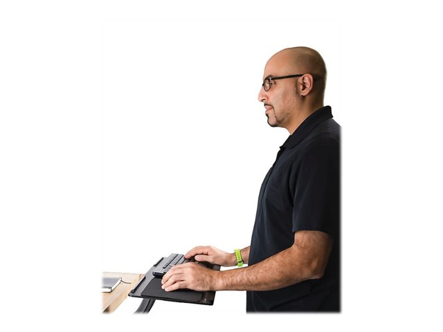 Höjdjusterbar bricka för tangentbord och mus, rörlig i alla riktningar, 25.4 x 66 cm plattform - Ergonomisk skrivbordsmonterad tangentbordsbricka med musmatta och handledsstöd - Kan lutas/vridas - Bord för tangentbord/mus - kan monteras under bord - svart