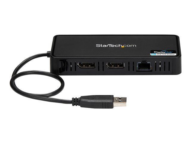 Dubbla skärmar USB-A dockningsstation med DisplayPort 4K 60 Hz Video och Gigabit Ethernet - 30 cm kabel - Bärbar USB 3.1 Gen 1 Type-A adapter för bärbar dator - Dockningsstation - USB - 2 x DP - 1GbE